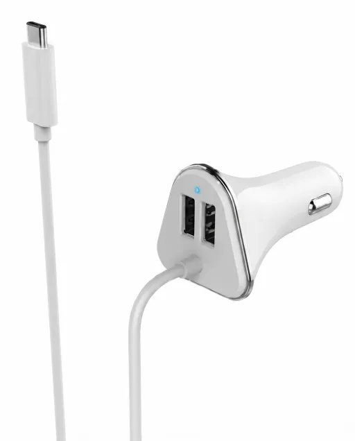 Fast 12V/24V mobile phone car chargers with built-in USB-C cable. Custom cellphone OEM branding and packaging available.